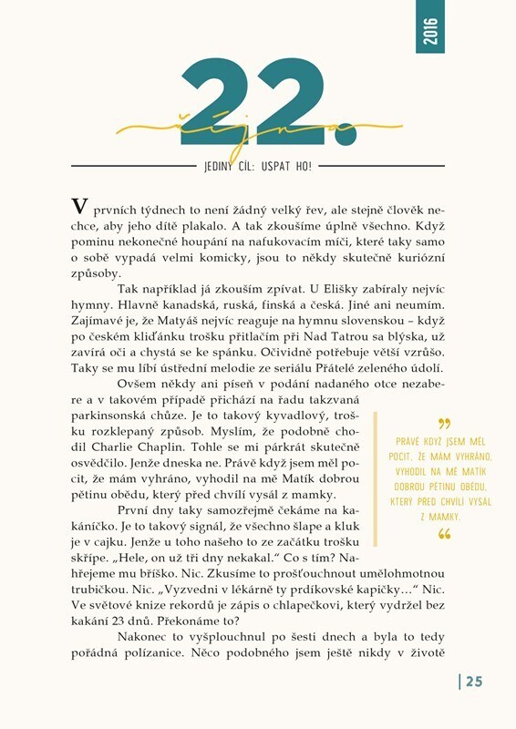 „Od sestřičky dostávám roušku, bílou gumovou obuv, zástěru a hodně široké zelené kalhoty. Kačenka už leží na sále a já usedám k její hlavě. Prakticky vzápětí se to stane. Matyáš je na světě a já si pozvolna uvědomuju, že jsem dvojtáta,“ nadšeně popisuje sportovní moderátor Vojtěch Bernatský....
