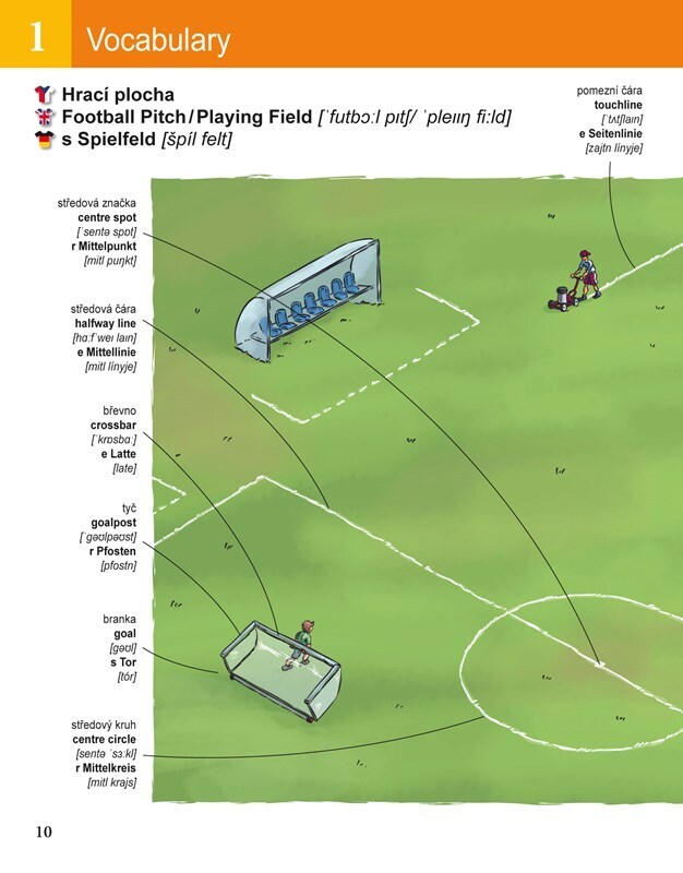 Praktická knížka přijde vhod všem malým fotbalistům, kteří mají velké plány do budoucna. Aby se v cizích zemích uměli domluvit se spoluhráči či aby správně porozuměli trenérským pokynům, měli by znát spoustu slovíček a frází, které nenajdou v obyčejné jazykové učebnici. Osvojit si je mohou...