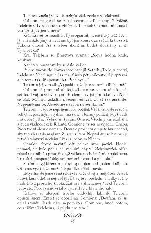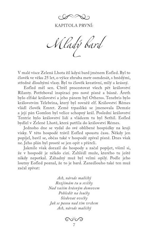 Bard, který nikde nebyl, nemá o čem zpívat. To si aspoň Eofled myslí, a tak se vypraví na cestu. Má v plánu navštívit všech pět království Rilanty. Jeho dobrodružství začíná radostně, všechno mu téměř dokonale vychází. Když ale dojede do království Tenebris, zjistí, že to v něm pěkně vře. Po...