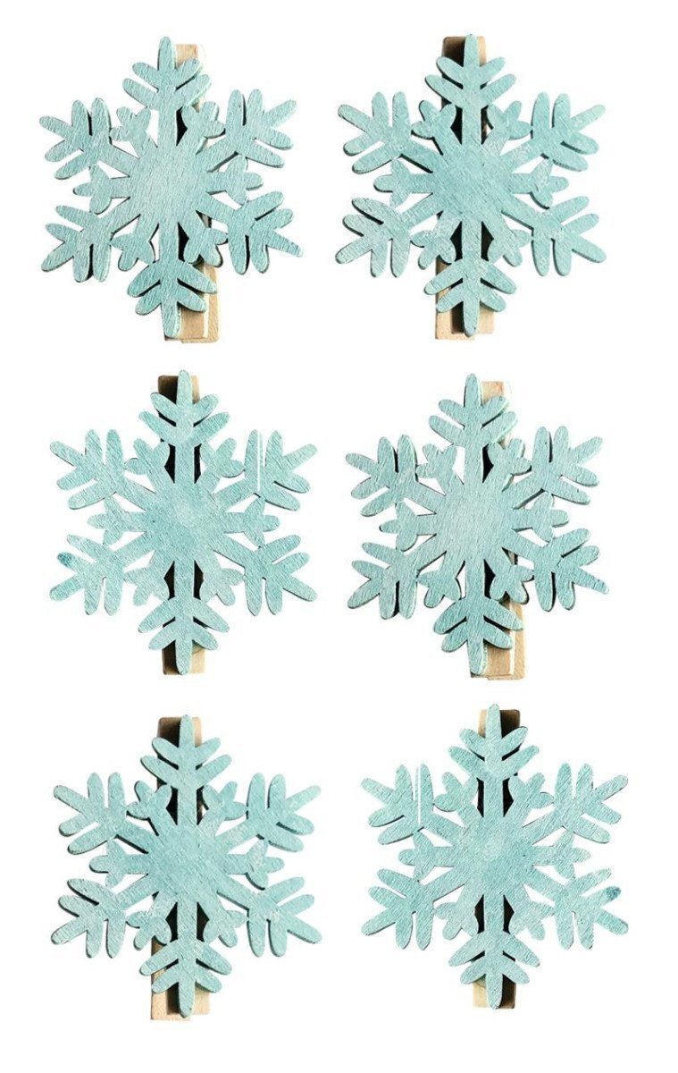 Vločka dřevěná na kolíčku 6 cm (6 ks)