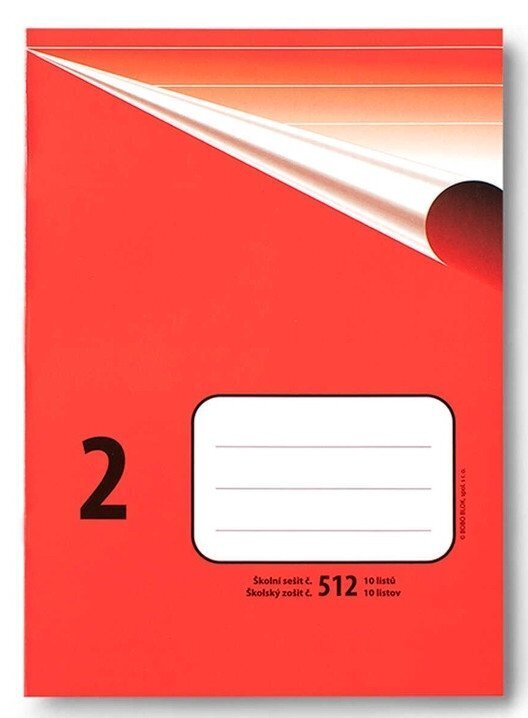 Klasický školní sešit číslo 512, formát A5, 10 listů, linkovaný, 16 mm linky. br brŠkolní sešity mají pevnou papírovou obálku v klasickém retro designu. Na přední obálce je několikařádkový prostor pro nadepsání jména a příjmení, třídy nebo školního předmětu. br