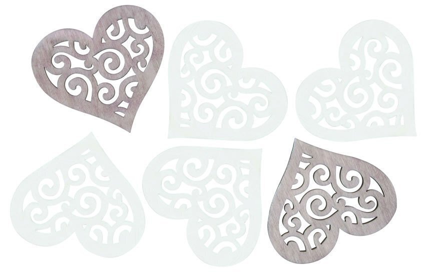 Dřevěná srdce 6cm - hnědobílý mix 6ks
