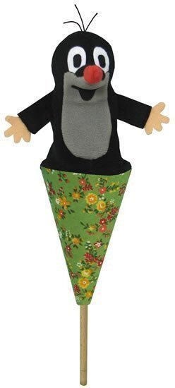 Střední kornoutový maňásek Krtečka, textilní, ovládaný dřevěnou tyčkou.Nevhodné pro děti do 3 let, nebezpečí píchnutí...