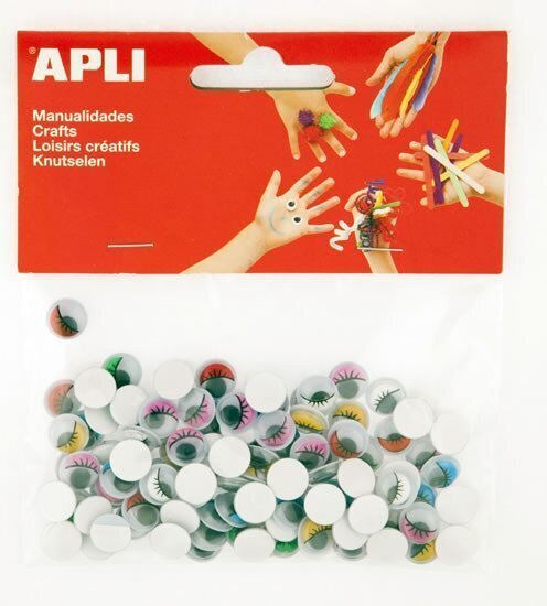 APLI oči kulaté s řasami O 10 mm samolepicí - mix barev 100 ks