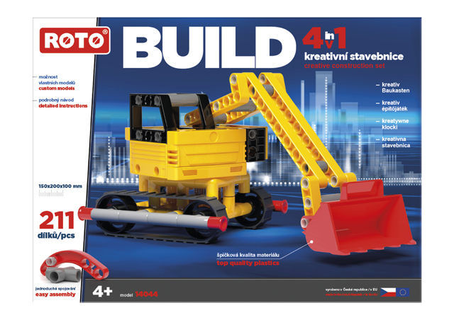 Stavební stroje. ROTO 4v1 - 211 dílků nabízí různé možnosti kombinací a dotváření jednotlivých modelů. Libovolně kombinovatelné s dalšími stavebnicemi ROTO. Vyrobeno v ČR z vysoce kvalitních plastů.