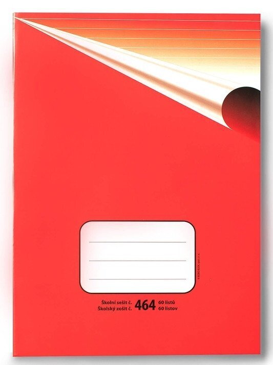 Klasický školní sešit číslo 464, formát A4, 60 listů, linkovaný, 8 mm linky. br brŠkolní sešity mají pevnou papírovou obálku v klasickém retro designu. Na přední obálce je několikařádkový prostor pro nadepsání jména a příjmení, třídy nebo školního předmětu. br