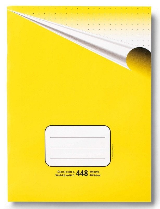 Klasický školní sešit číslo 448, formát A4, 40 listů, tečkovaný. br brŠkolní sešity mají pevnou papírovou obálku v klasickém retro designu. Na přední obálce je několikařádkový prostor pro nadepsání jména a příjmení, třídy nebo školního předmětu. br brSešity