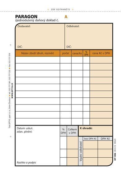 Paragon, A6, 3 × 25 listů, číslovaný, NCR