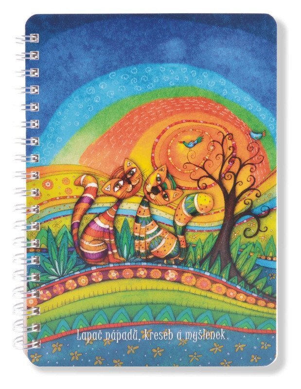 zápisník kapesního formátu B6 s motivem Sluneční kočky. Inspiruje Vás k lapání nápadů, které poletují všude kolem. br brKroužkový blok br• Krásná barevná obálka s ilustrací od Lucie Ernestové br• Vysoká gramáž papíru br• Krémový Holmen Book papír br• 50