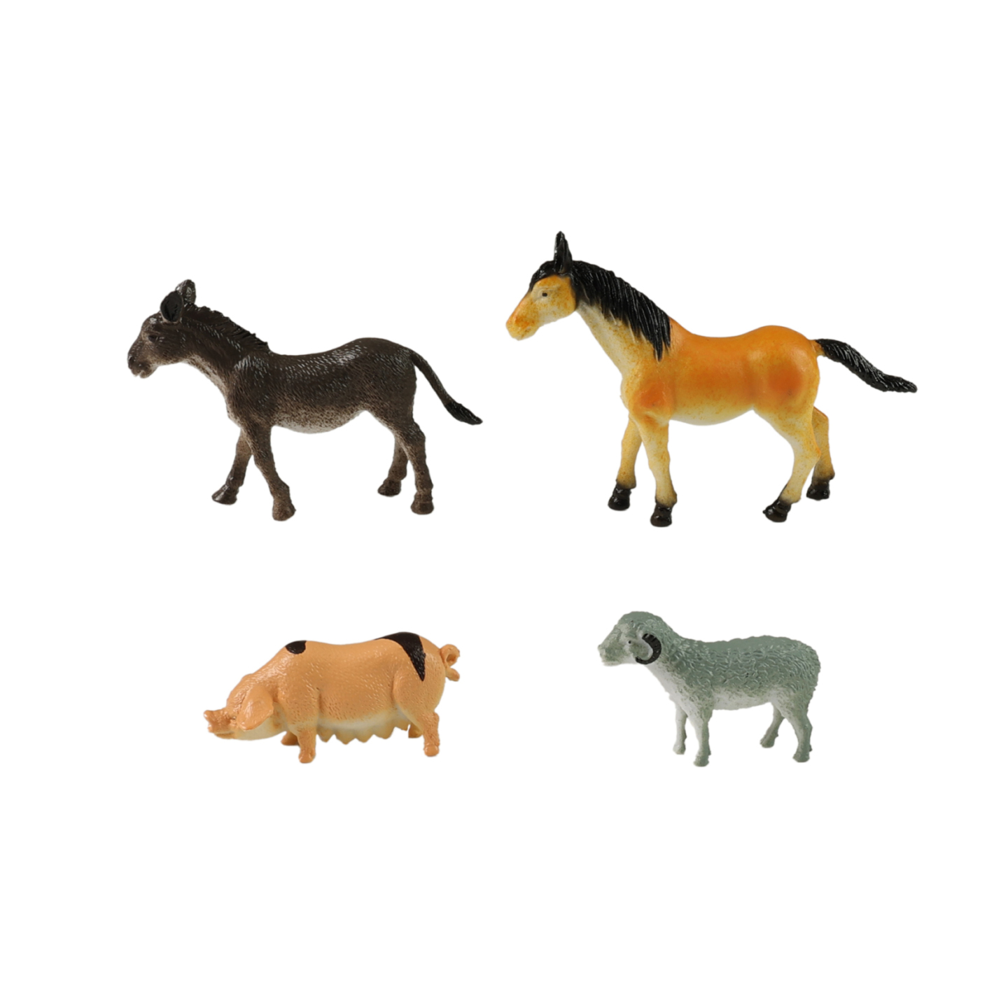 V balení najdeš 12 ks různých domácích zvířátek, jako je kohout, kočka, kráva, husa a jiné.