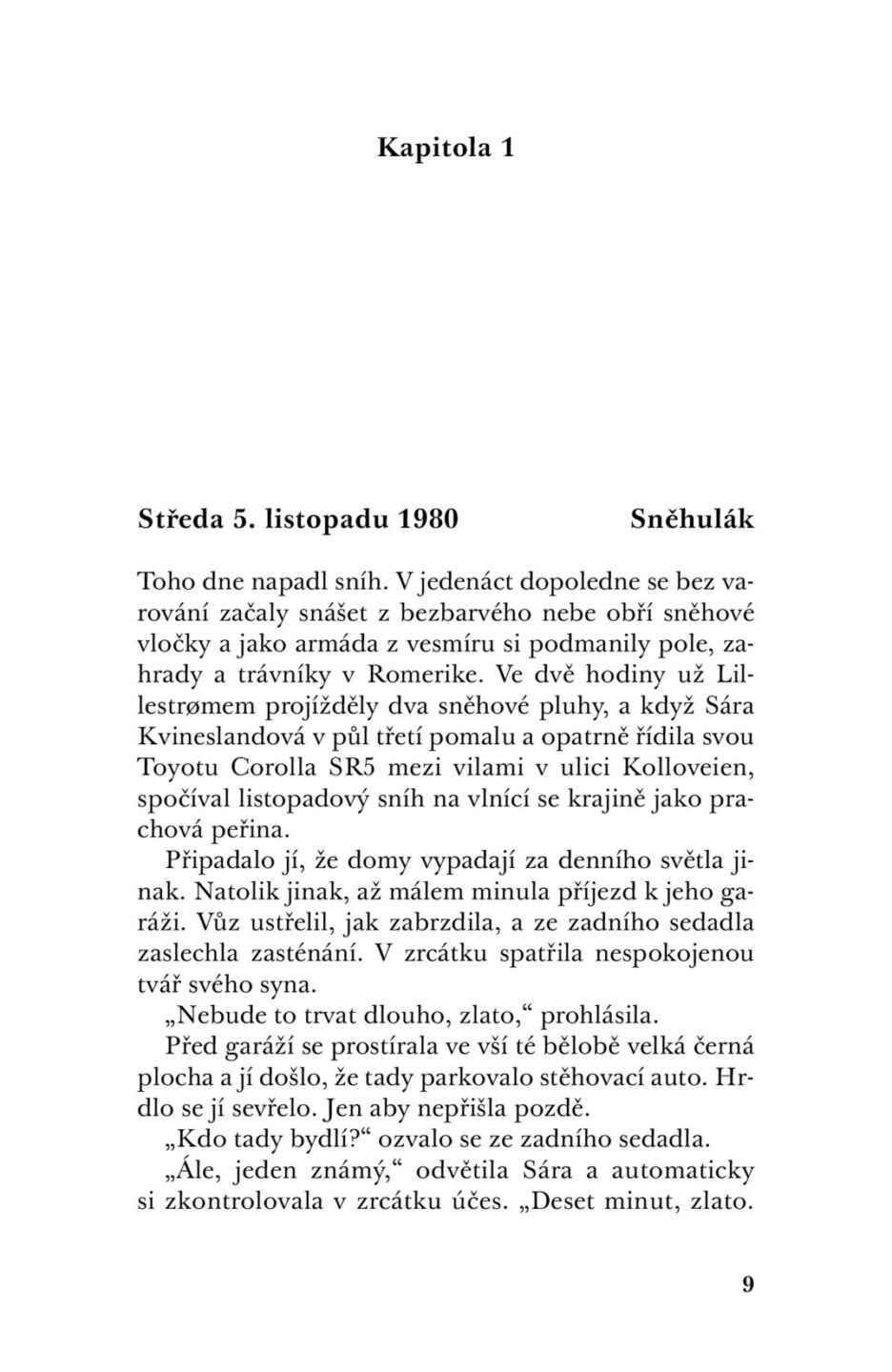 Je listopad. V Oslu napadl první sníh. Birte Beckerová přichází domů z práce a chválí manžela a syna, jakého postavili v zahradě krásného sněhuláka. Jenže oni žádného nepostavili. Celá rodina užasle zírá z okna na sněhuláka, jehož černé oči hledí přímo dovnitř domu. Ráno je Birte pryč. Zmizela...