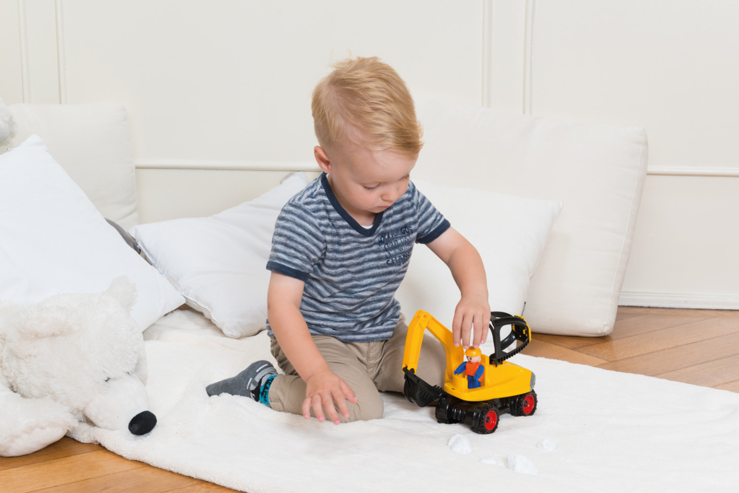 Truckies bagr z kvalitního plastu a velmi pevnou stavbou. Plně mechanicky funkční. Obsahuje odklopitelnou kabinu s aktivním panáčkem.