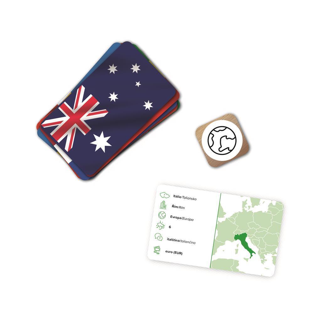 Poznáš vlajku? Jakému státu patří, na kterém kontinentě leží, jaké má sousedy, či jakým jazykem se mluví a jakou měnou se dá platit? Kdo první odpoví, získává kartu. Vítězí znalosti a rychlost. Změřte síly v této naučné a zároveň zábavné hře!