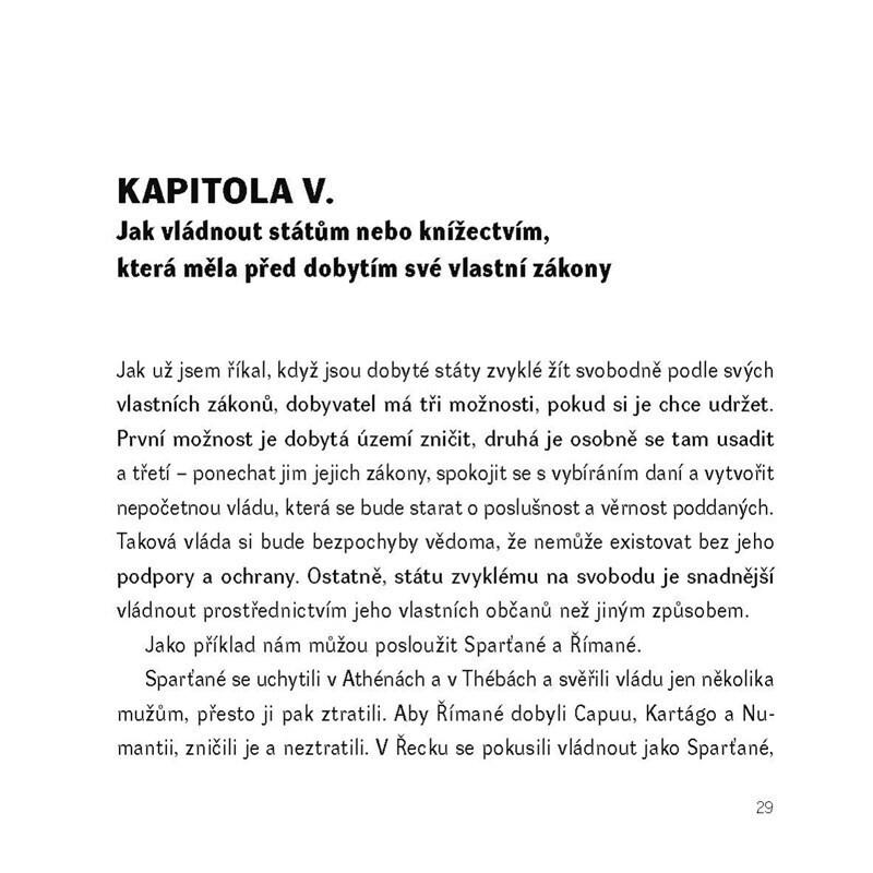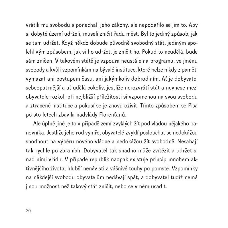 Jeden ze skvostů světové literatury, v němž politik, diplomat a spisovatel Niccolo Machiavelli vytvořil jakýsi manuál vlády, učebnici určenou vladařům i všem, kteří je obklopují. Machiavelliho nejvýznamnější dílo, které patří k základním kamenům světové politologie a historiografie, vychází v...
