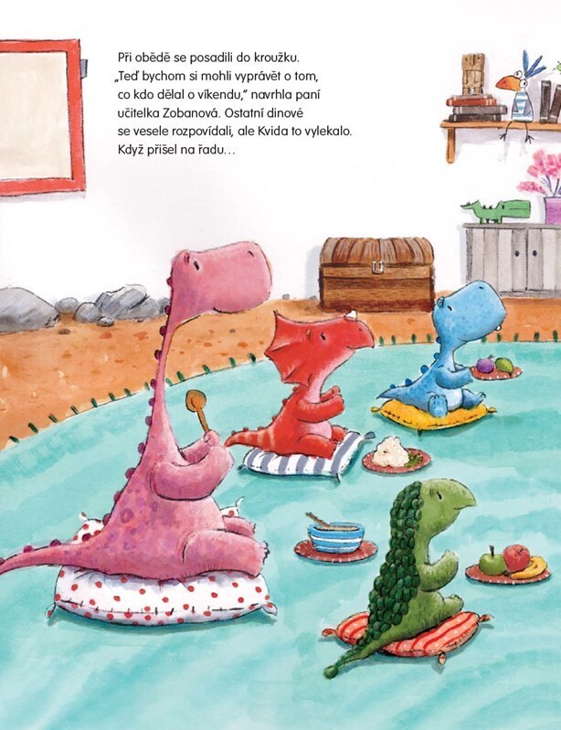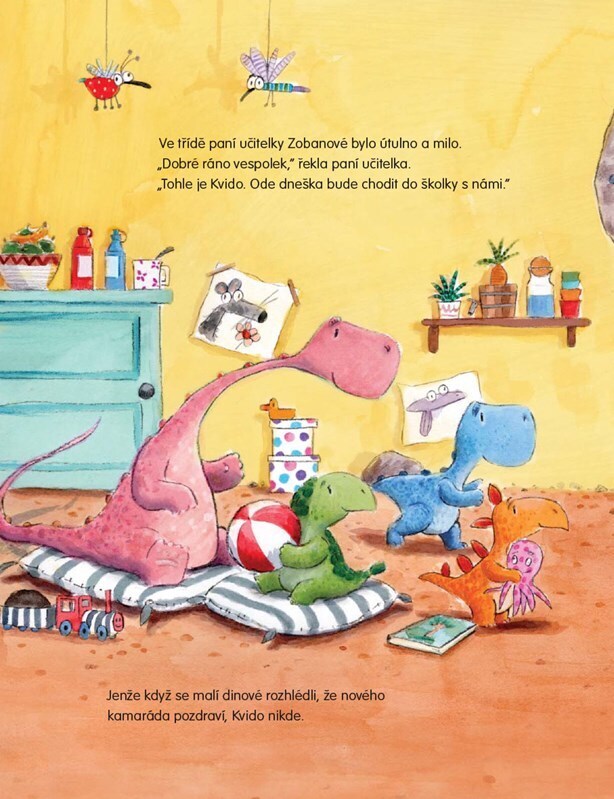Kvida čeká jeho první den ve školce, paní učitelka a houf nových kamarádů. Trošku se stydí, a tak využije svou superschopnost a schová se. (Schovávání mu totiž opravdu jde!) Jestlipak Kvido nakonec s pomocí nového kamaráda a maličkého kouzla nalezne potřebnou trošku odvahy? Ve školce je to přece...