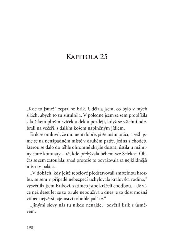 Když byla Eadlyn přinucena zúčastnit se Selekce, netušila, že by se mohla zamilovat do jednoho z 35 nápadníků. Ji prostě žádná pohádka nečekala! Jen počítala dny, až bude moct poslat všechny domů. Po událostech, které se odehrály v paláci, si ale uvědomuje, že nemůže být na všechno sama. A že...