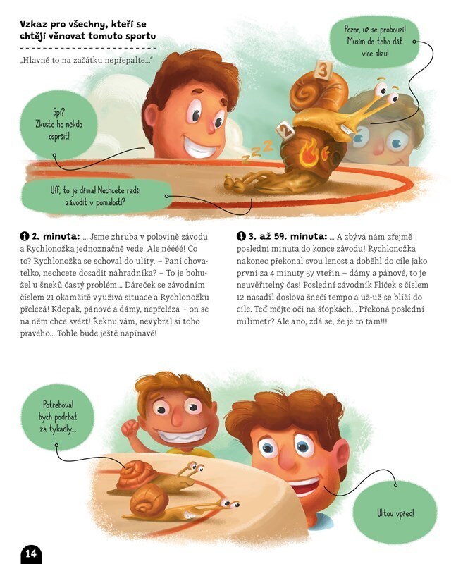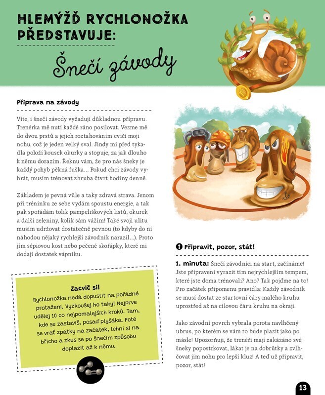 Připravit ke startu, pozor, teď! Milí diváci, vítáme vás na přehlídce známých i neobvyklých zvířecích sportů. Mezi soutěžícími se vám představí hlemýžď Rychlonožka – horký kandidát na výhru ve šnečích závodech. Dále se na vás těší králičice Sněženka, která vám předvede, jak se skáče králičí hop....