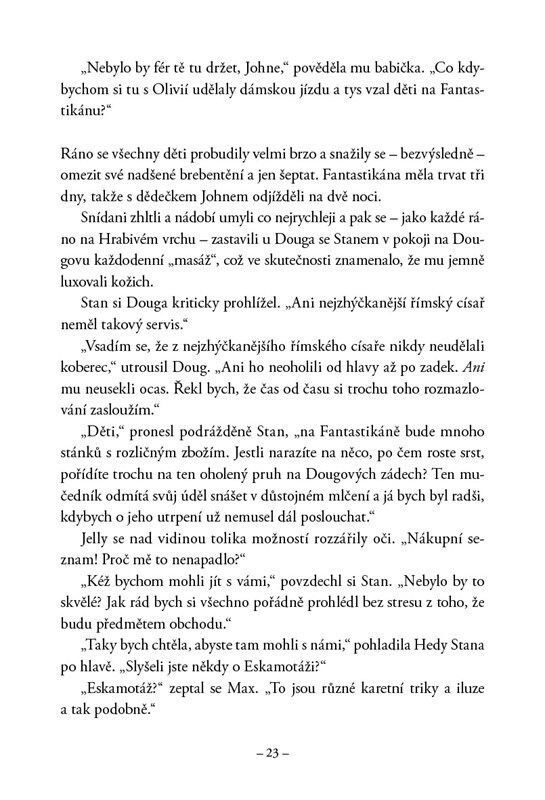 Hedy a Spencer jsou opět v domě na Hrabivém vrchu, který patří jejich dědečkovi, bývalému kouzelníkovi. Náhodou se dozvědí o Fantastikáně, turnaji v magii, který se odehrává v tajemném podzemí, kde vládne spolek kouzelníků Eskamotáž. Když se tam vydají, objeví podivnou živou mapu, která se...