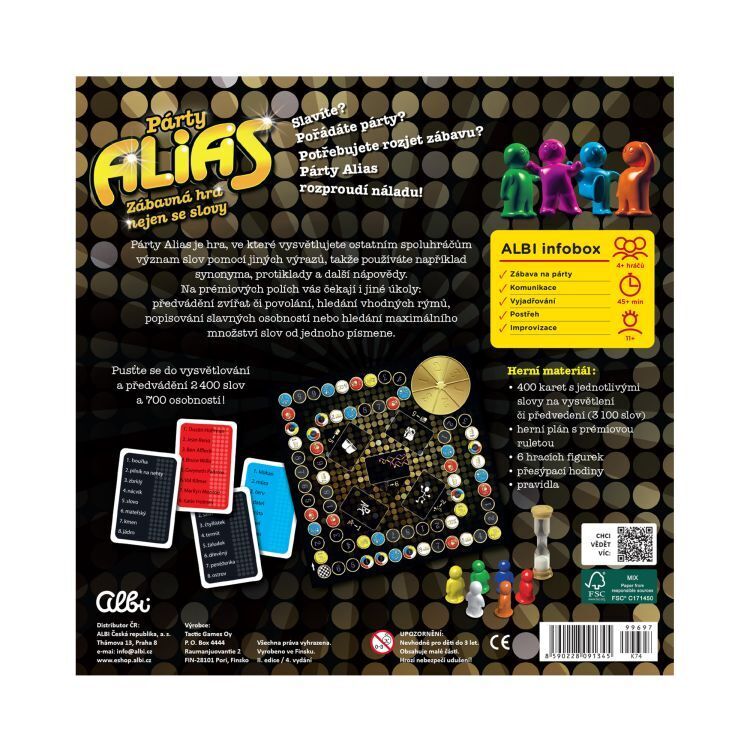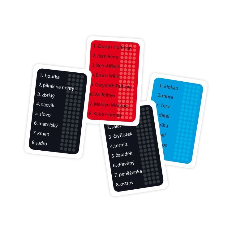 V této párty hře vysvětlujete ostatním spoluhráčům význam slov pomocí jiných výrazů, takže používáte například synonyma, protiklady a nápovědy. Na prémiových polích na vás čekají i jiné úkoly: předvádění zvířat či povolání, hledání vhodných rýmů, popisování slavných osobností nebo hledání co...