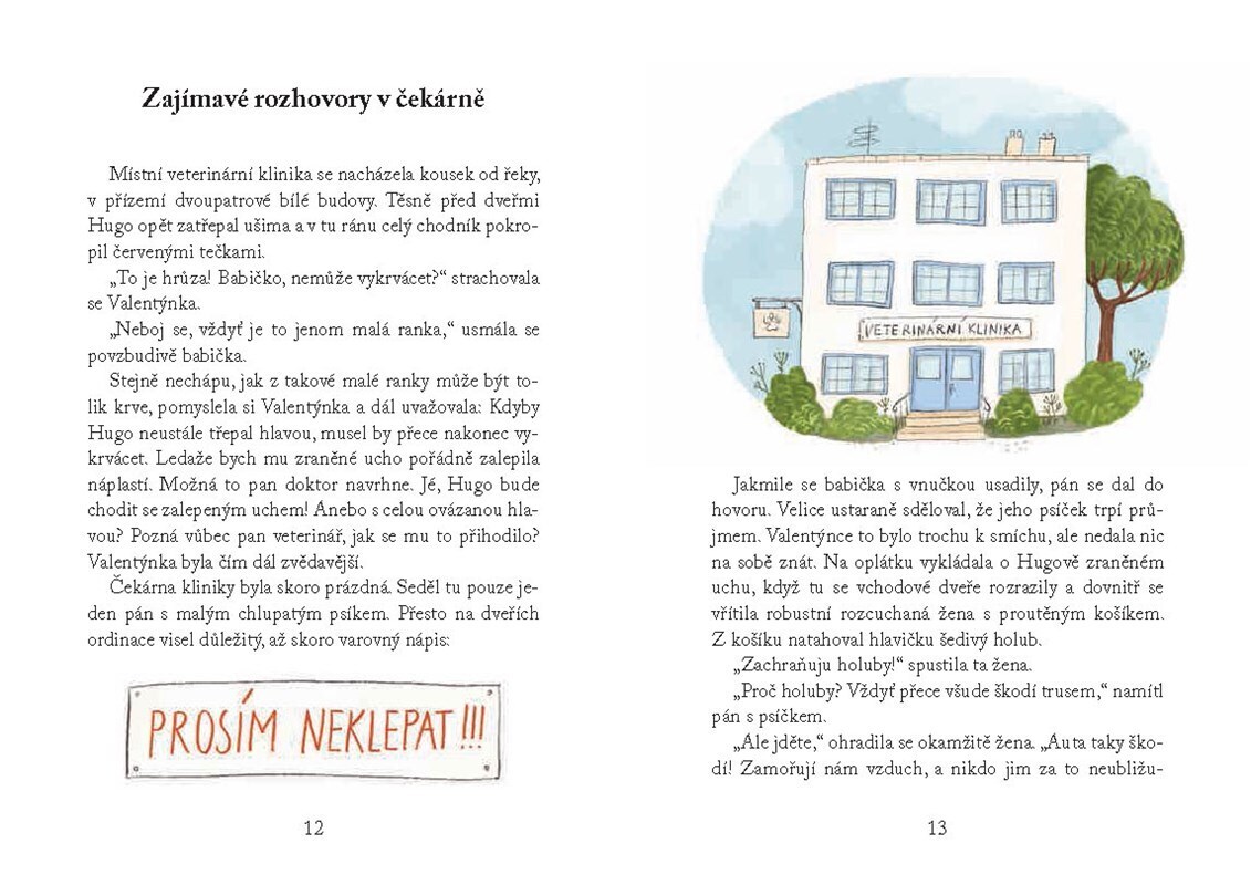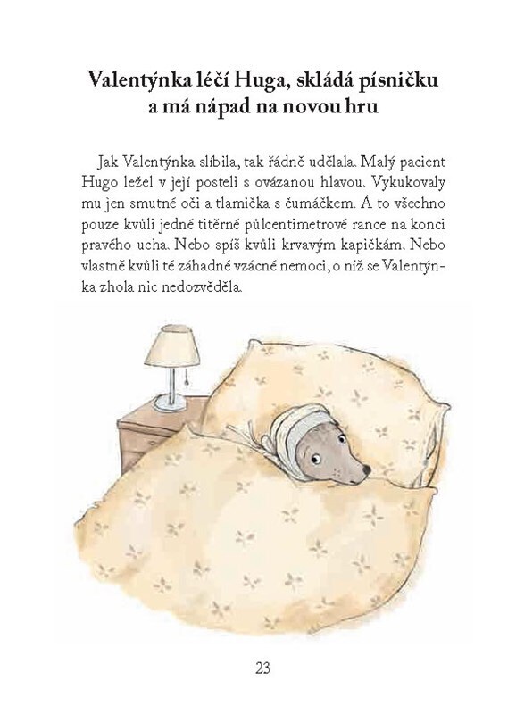 Valentýnka je holčička s nevšedními nápady, na které vždycky už netrpělivě čekají kamarádi Jonáš, Péťa a Zuzka. Tentokrát ji k nové hře inspiruje její pejsek Hugo, který si zraní ucho. Po návštěvě veterinární kliniky Valentýnka dětem navrhne, že si společně zařídí ordinaci. Budou léčit zvířátka!...