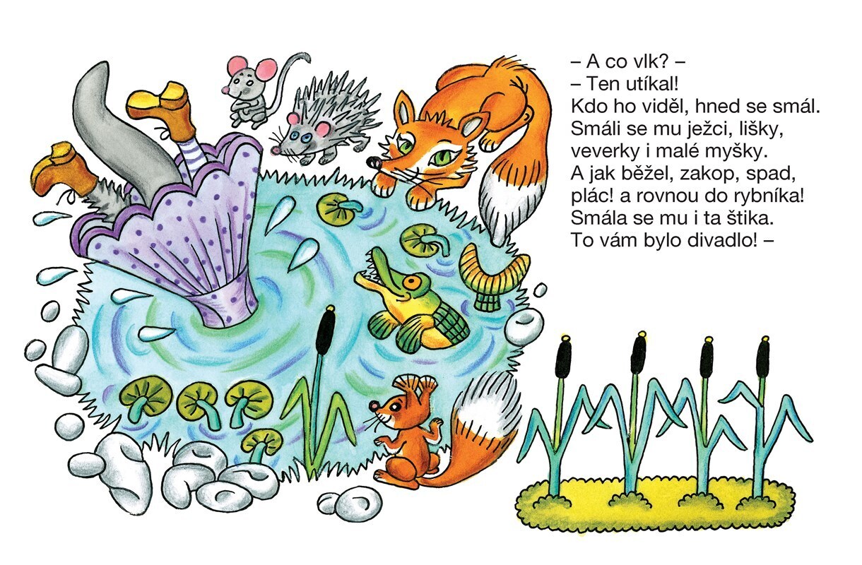 To jsem já, bradička bílá! Otevřte, kůzlátka milá. Nesu sladké zelíčko, tak otevřte maličko! – Těmito líbeznými slůvky vlk přemlouvá kozlátka, aby mu otevřela, vyparáděný tak, že se musí děti smát, jak mu klobouk s pentlemi padne. Jedna z nejoblíbenějších dětských pohádek s ilustracemi Heleny...