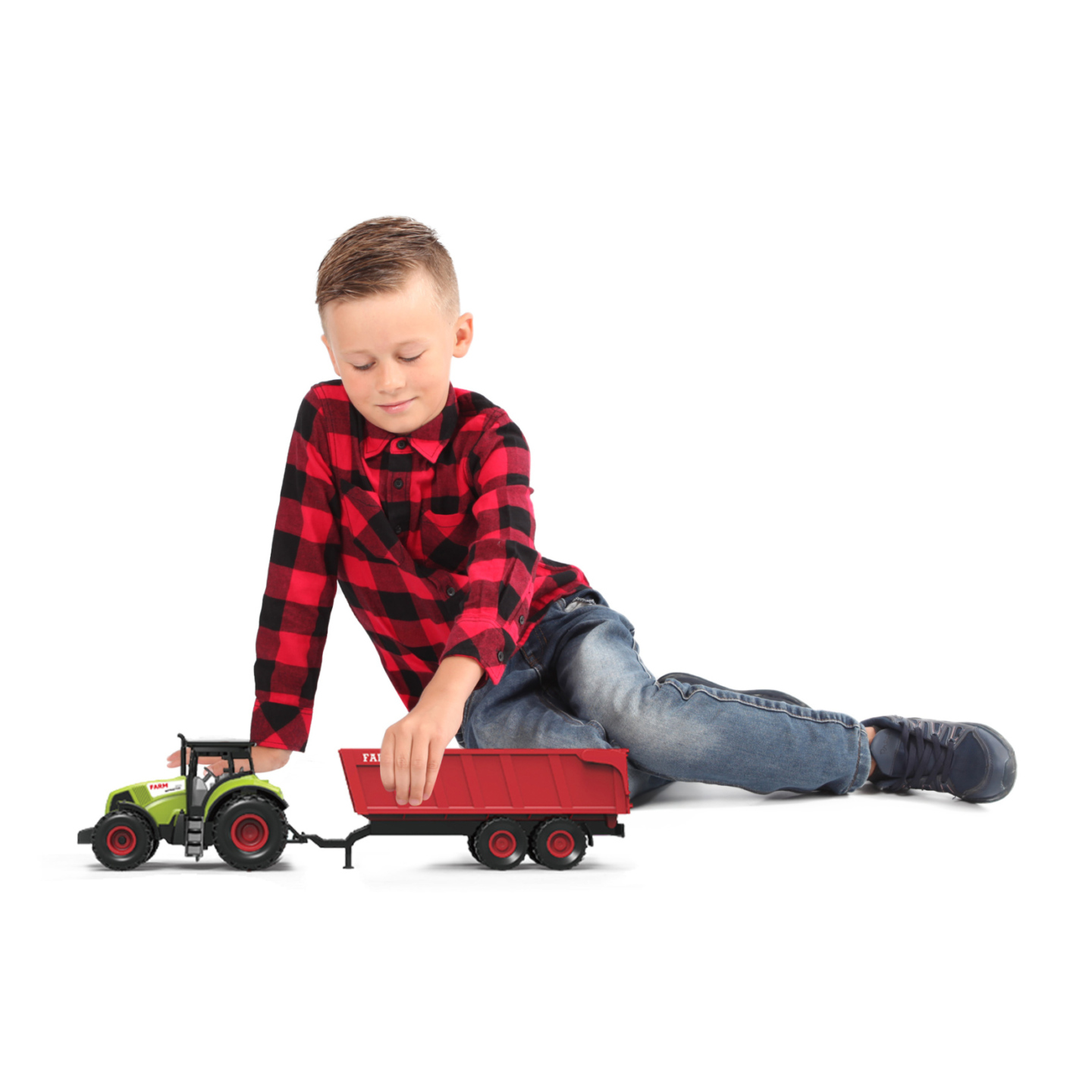 Moderní traktor s vlečkou hračka z kolekce Moje malá farma. Nepostradatelný pomocník pro každého malého farmáře! Vlečku můžeš jednoduše odpojit a traktor využít k dalším pracím. Traktor jezdí na setrvačník a jeho délka včetně vlečky je 36 cm. Zmáčknutím jakýchkoliv ze třech tlačítek traktor...
