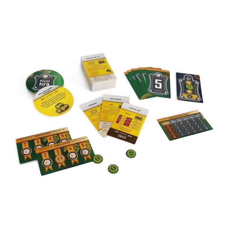 Znalosti o pivu jsou v Pivní hře stejně důležité jako sázení a dobrý odhad vlastních i cizích schopností! Díky 8 různým kategoriím je každá partie Pivní hry unikátní. Hra má jednoduchá pravidla. Hra obsahuje: 118 karet piva, 8 pivních podtácků s jednotlivými disciplínami, přehled kol, 5 karet...