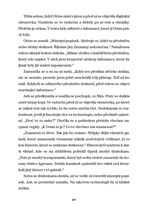 Ash se touží stát pilotkou, aby se mohla účastnit boje v meziplanetární válce a pomstít svoji rodinu. Místo toho jí nabídnou práci strážkyně Knihovny na konci vesmíru. Dostane za úkol sbírat a chránit artefakty, informace a důležité záznamy o všech planetách tak, aby chod vesmíru zůstal v...