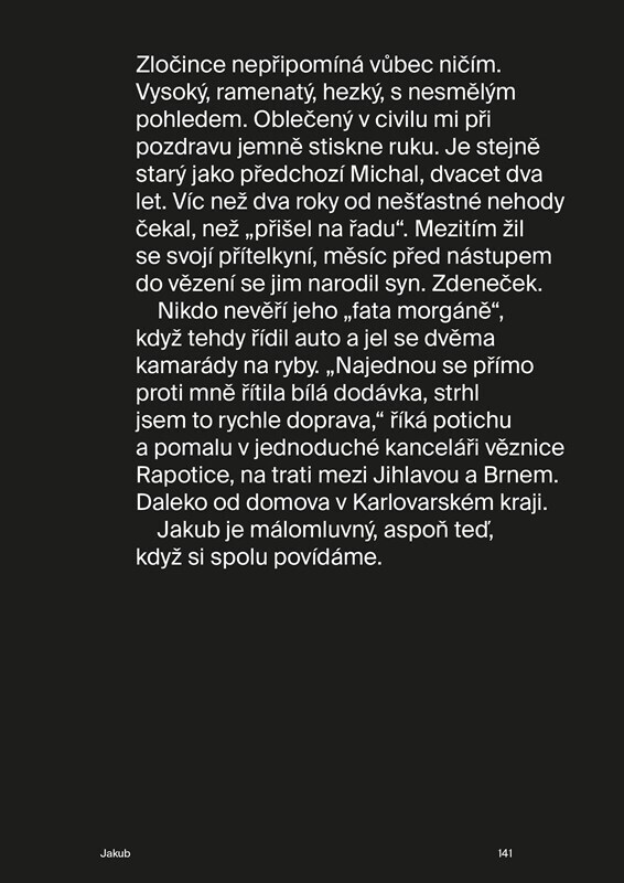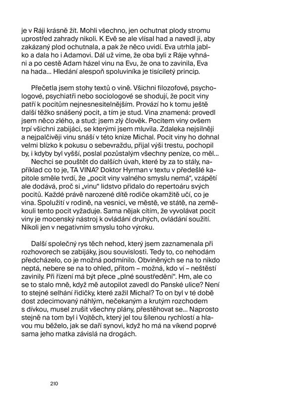 Poslouchám jejich příběhy, které je dovedly do vězení. Faktického, toho s mřížemi nebo nehmatatelného, zalezlého ve svědomí. Všichni za sebou mají zločin, který nechtěli spáchat. Vůbec. Vždycky to bylo spíš neštěstí, omyl, okamžik nepozornosti… A někdo to odnesl životem. Kniha Zabíjím rychle...