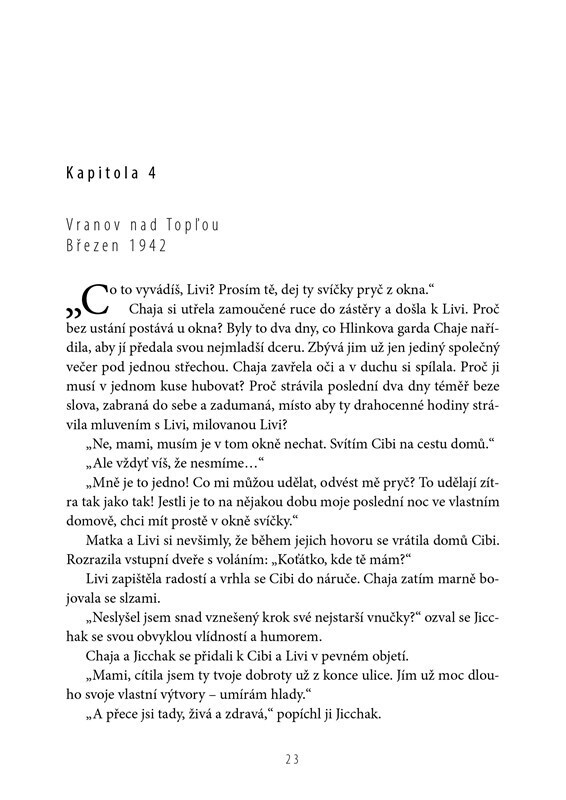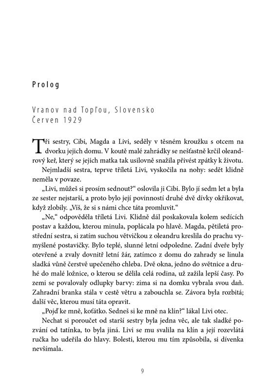 Když byly Cibi, Magda a Livia malé, slíbily svému otci, že si zůstanou nablízku, ať se stane cokoliv. O několik let později Livii deportují do Osvětimi – a Cibi se k ní dobrovolně přidá. Jedině Magda se ještě nějakou dobu skrývá na rodném Slovensku, ale brzy také skončí ve vyhlazovacím táboře....
