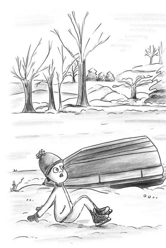 Venku mrzne, až praští, a tak sourozenci Tadeáš s Agátou vyrážejí v doprovodu tatínka bruslit na rybník. Když Tadeáš usedne na otočenou pramičku, aby si odpočinul, zaslechne šramocení. S tátovou pomocí loďku obrátí a najdou pod ní promrzlou volavku. Je úplně zesláblá a vyhladovělá. Ani se...