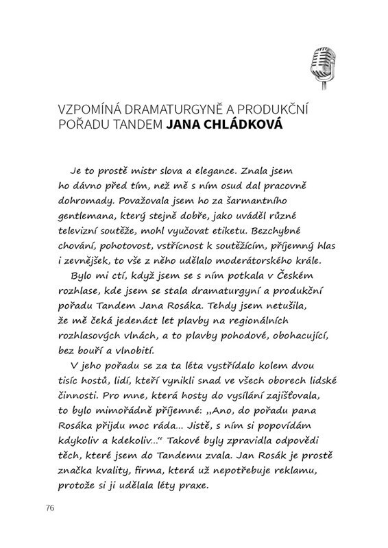 Jeho hlas se stal ikonou mnoha úspěšných rozhlasových i televizních pořadů. Jan Rosák oslavil padesátileté výročí svého působení na mediální scéně a jeho popularita stále trvá. Za nezaměnitelným charismatem a tváří s neodmyslitelným knírkem se skrývá mnoho životních vášní a talentů – rodina,...
