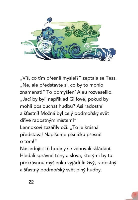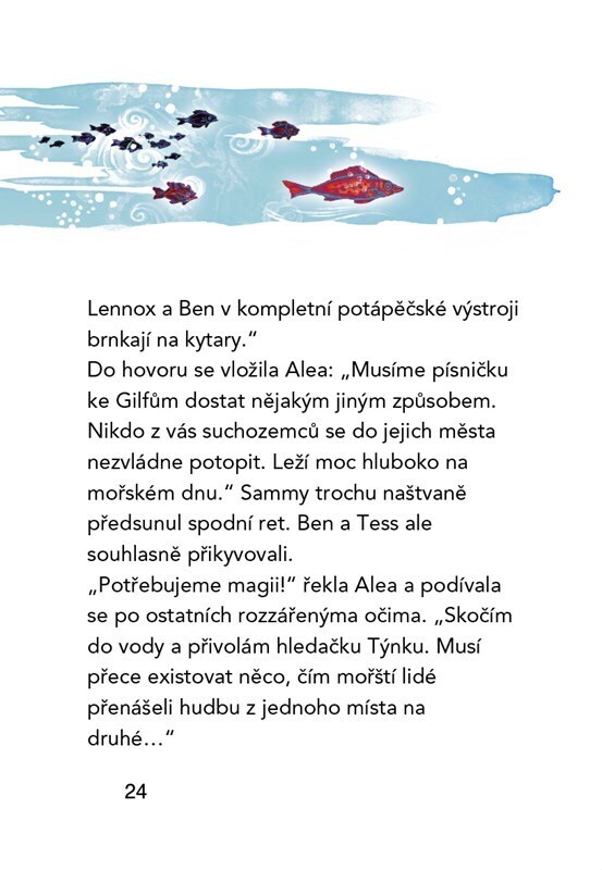 Příběh o Alee, dívce moře, napsaný na míru začínajícím čtenářům! Alfa Cru složili písničku pro podmořský svět. Jak ale zařídit, aby ji uslyšeli Gilfové – magické bytosti, které žijí na dně moře? Hudbu milují a bez ní je jim smutno. Alea a její kamarádi netuší, kde leží jejich město, ani jak pod...