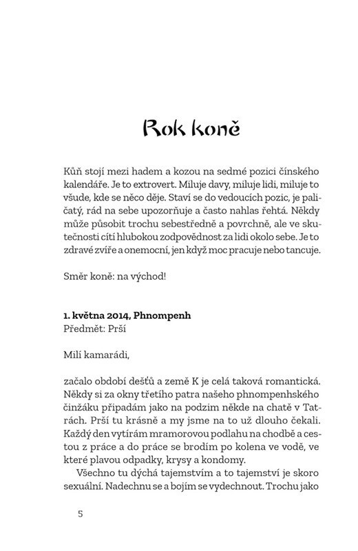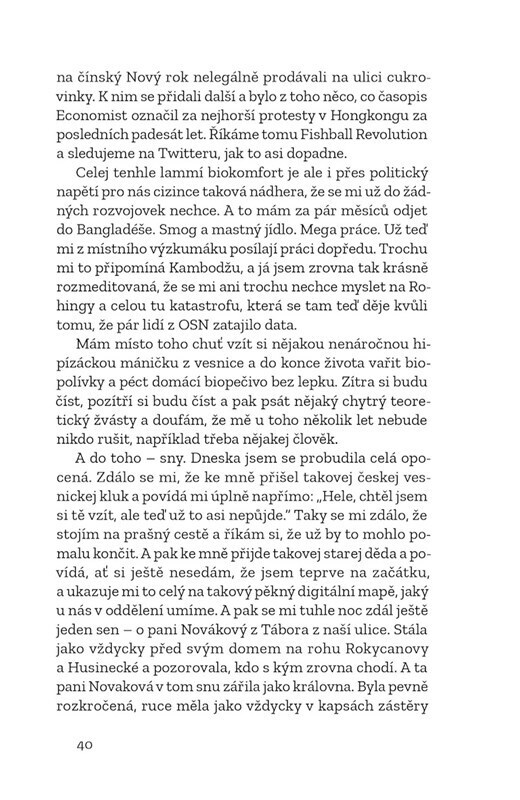 Kniha krátkých dopisů z let 2014 až 2019 strávených v jižní a jihovýchodní Asii. Autorka během nich pracovala pro agenturu UN Women v Kambodži a žila v Hongkongu a Bangladéši, kde dělala terénní výzkum s ilegálními migrantkami. Ve svých dopisech nesentimentální formou popisuje politické změny v...