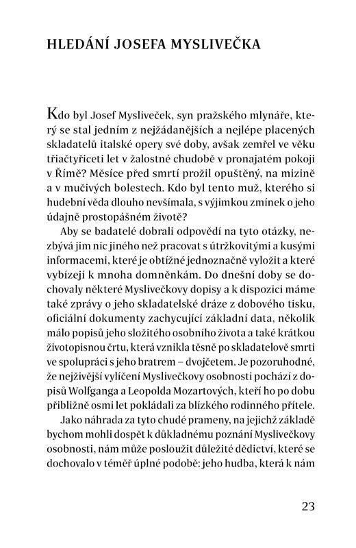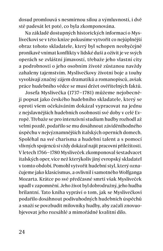Průvodce po životě a díle Josefa Myslivečka, který vychází u příležitosti premiéry filmu Il Boemo, je určen pro nejširší veřejnost. Seznamuje čtenáře s ověřenými fakty o Myslivečkově životě, který je opředený řadou legend, i se skladatelovou kariérou a vnímáním jeho odkazu. Součástí knihy je...
