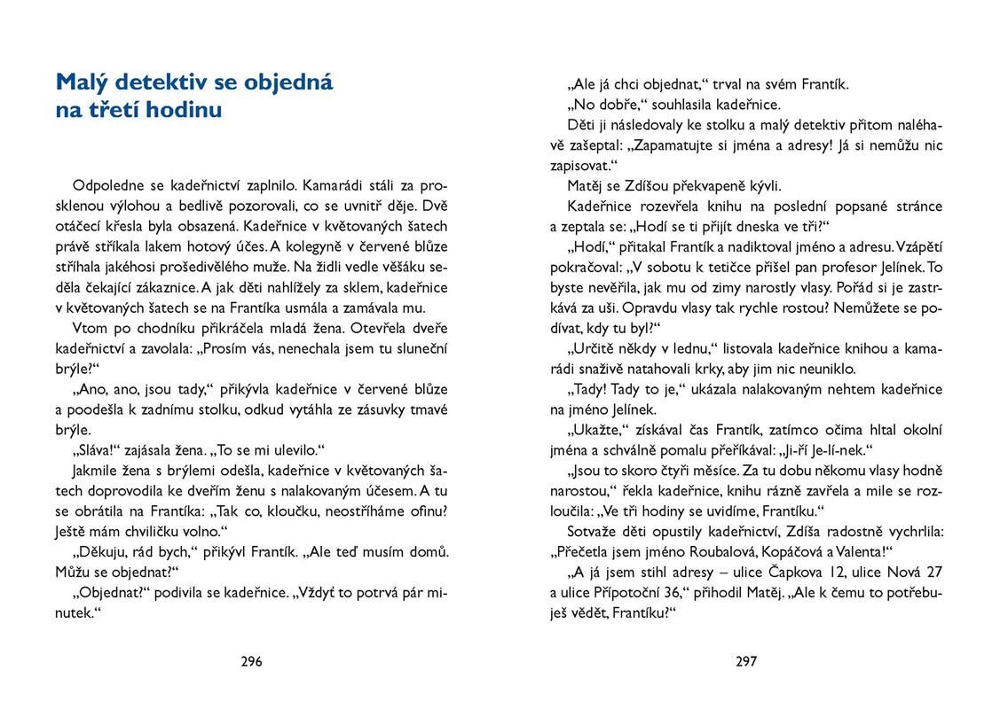 Malý detektiv je pašák. Neohroženě se okamžitě pouští po horké stopě, aby dopadl pachatele krádeže. Ten hrdina se jmenuje Frantík Lebeda. Je ovšem pravda, že není úplně sám. Pomáhají mu nejlepší kamarádi Matěj, Zdíša a vlčák Kazánek. A tak se s nimi pusťte do pátrání a odhalte tajemství tří...