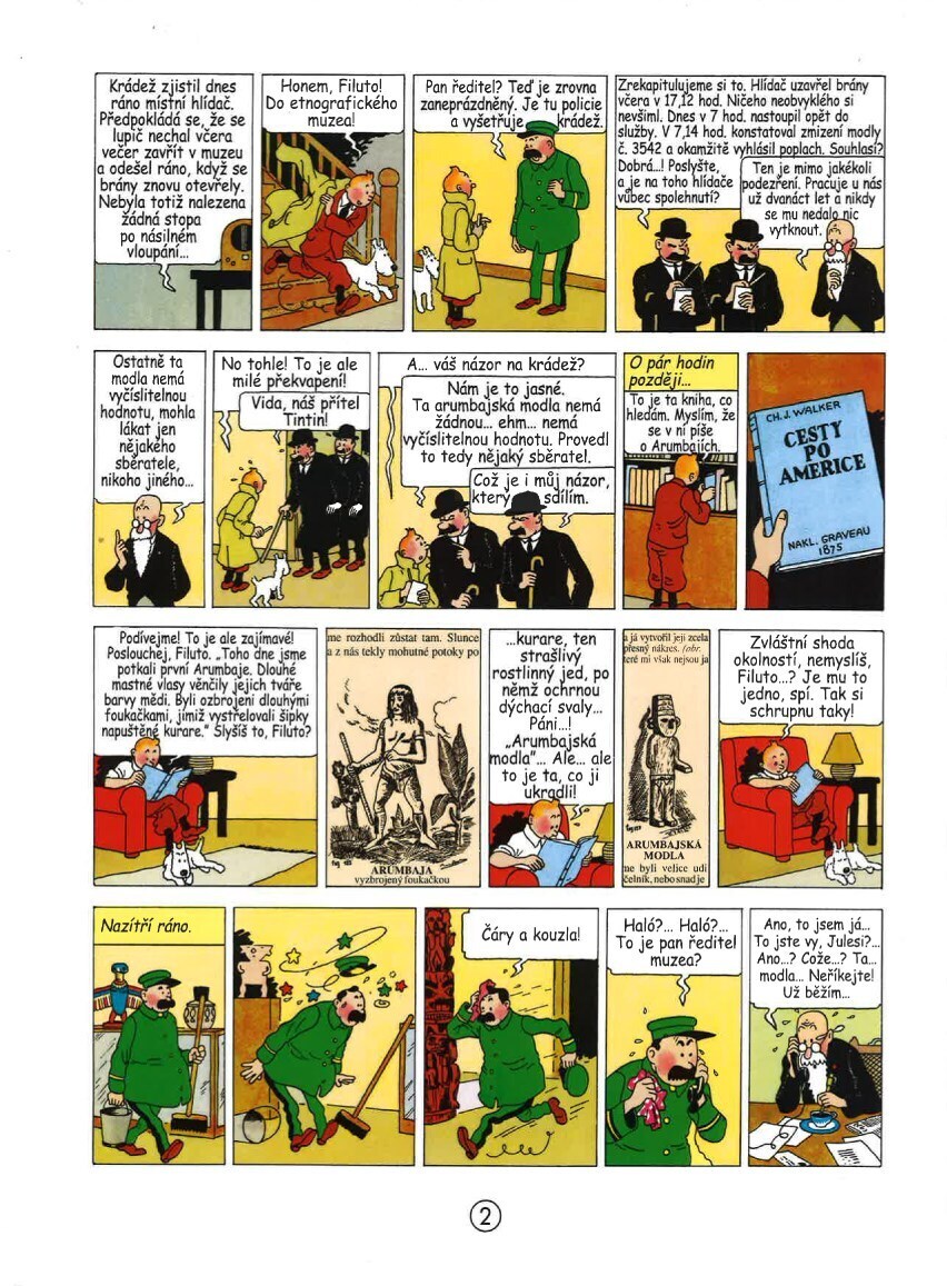 Odvážný reportér Tintin tentokrát míří do Jižní Ameriky, aby hledal indiánskou modlu, která byla ukradena z etnografického muzea. Po modle ovšem pátrá i banda zlodějů a ta se snaží za každou cestu Tintina zbavit. Tintin ani zloději však nevědí, že modla skrývá překvapivé...