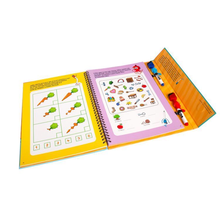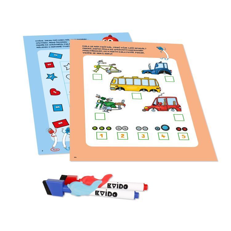 Procvičujte grafomotoriku s Kvídem a roztančenými fixami. 50 stran plných úkolů pro předškoláky a malé školáky. Díky mazatelným fixům lze sešit vyplňovat opakovaně. Sešit se zavíráním na magnet a 2 barevné fixy.