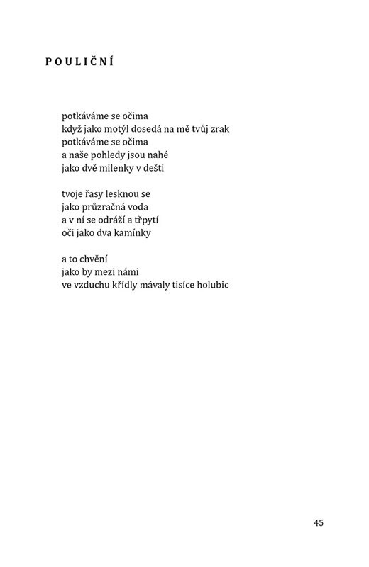 Verše plné štěrku, který drhne mezi zuby. Trávy, která příjemně šimrá na zátylku, a strachu, který tě někdy svírá třeba i jen proto, že máš projít žižkovským tunelem v noci. Hází to s tebou ode zdi ke zdi a někdy nemáš tušení, jestli zprava doleva, nebo seshora dolů. Zmatek. Jedno velké...