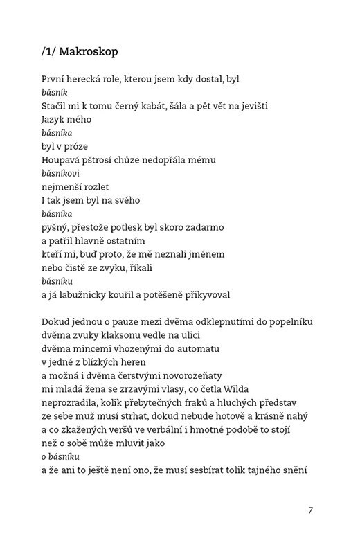Makroskop je přístroj, který ostří na cokoliv myslitelného, co svět nabízí. V jeho čočce se nejeví nic podřadné, vždy dává příležitost objevit ve věcech jejich poetiku. A oddálíme-li, odhalíme širší souvislosti mezi nimi, spojí se nám jako puzzle zapadající do velkého celku. Druhou...