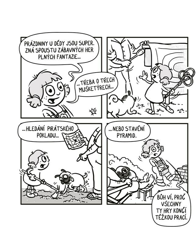 V Placatém komiksu pro malé i velké čtenáře, především však pro všechny nadšené páníčky uchrochtaných mopsů, se pobavíte u dalších příběhů svérázné Kačky a jejího čtyřnohého kamaráda. Uvidíte, že střet dětského a dospěláckého světa se dá řešit s nadhledem, vtipem a noblesou... A dokonce zde...