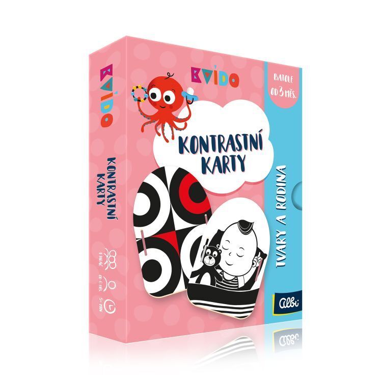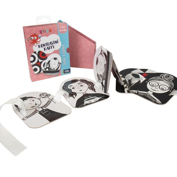 Kontrastní karty se sametovým povrchem a obrázky s motivy rodiny a tvarů pro děti od 3 měsíců vhodné pro zabavení v kočárku nebo v postýlce. Hra obsahuje: 14 kontrastních obrázků s motivy rodiny a tvarů na 7 pevných kartách vel. 11 × 15 cm se sametovým povrchem pro podporu smyslového vnímání...