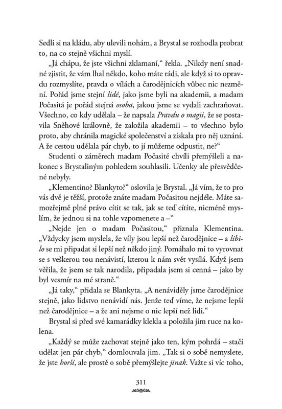 Čtrnáctiletá Brystal Vždyzelená se narodila na špatném místě. V Jižním království je totiž magie trestná, a navíc tam ženy nesmí číst. Když se dívka k jedné knize lstí dostane, objeví v sobě nadání pro kouzla. Před přísným trestem ji zachrání až madam Počasitá, která ji přijme do Magické...
