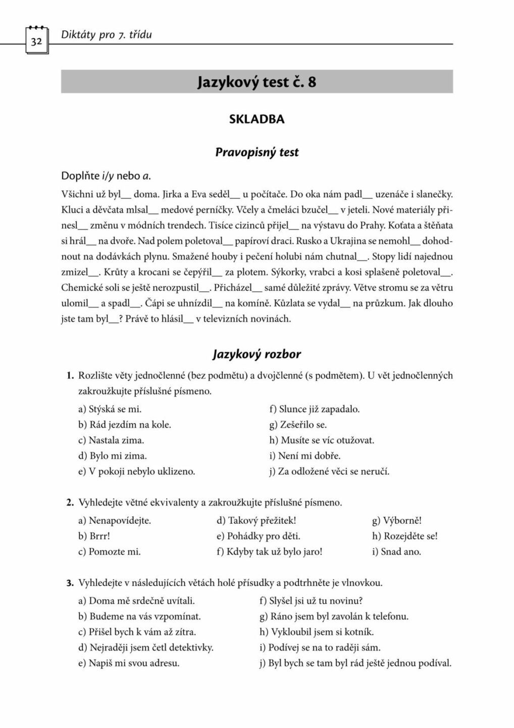 Diktáty a testy pro 7. třídu - Procvičení učiva z českého jazyka