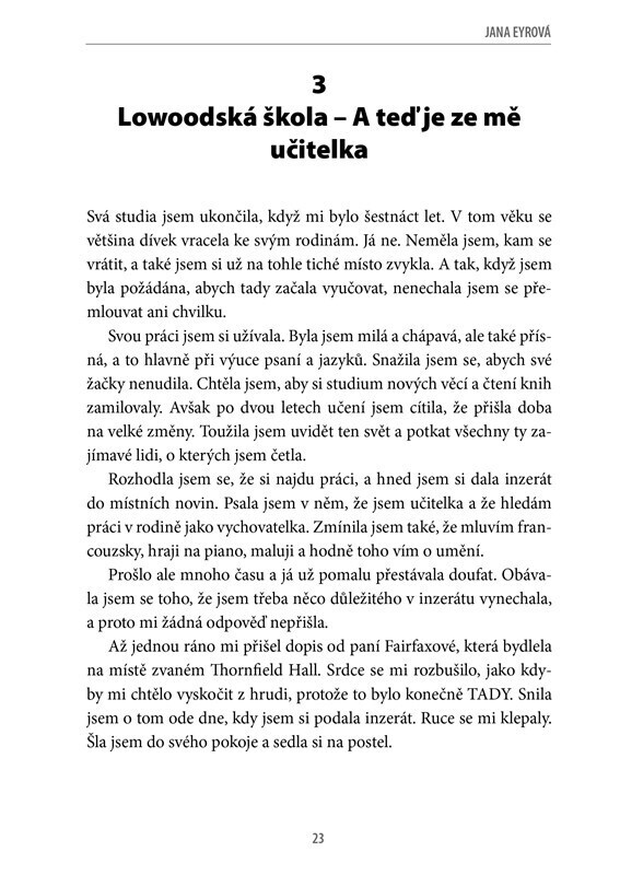Nejznámější dílo Charlotty Brontëové, román o statečné mladé ženě, které bylo tolik nepřáno osudem a která se přesto dočkala svého štěstí, patří mezi vrcholy anglické literatury. Publikace nabízí zkrácenou dvojjazyčnou verzi románu, která je určena pro mírně pokročilé studenty angličtiny. Kromě...