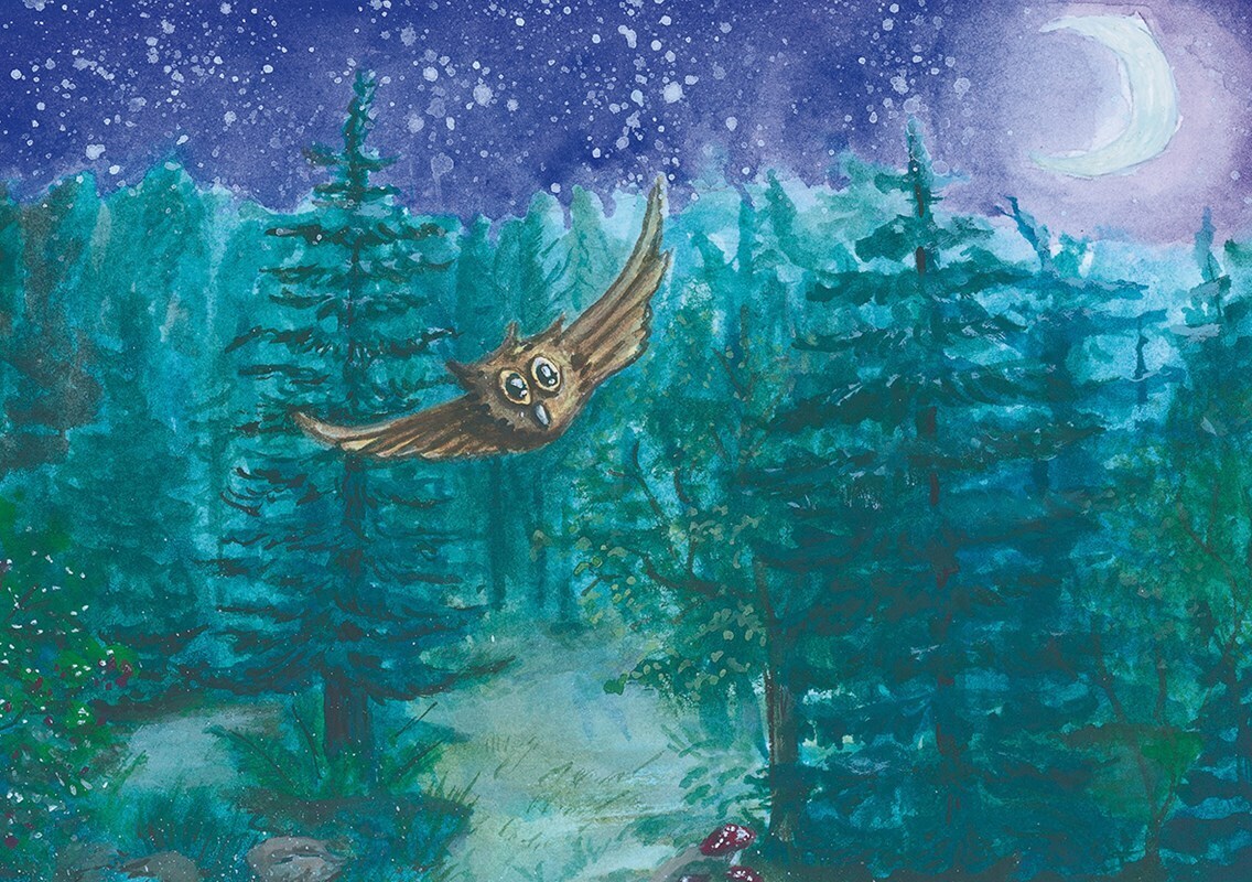 V čarovném lese žije sovička Hugo. Hugo je malý, ale má velkou chuť létat. Létá sem a tam, se zavřenýma očima i pozadu, a ne vždy se vyhne nárazu. Jedné noci takhle vrazí do pana Smrka. Jak Hugo napraví, co provedl? Kdo mu pomůže? Začtěte se s dětmi do kouzelné česko-anglické pohádky o lesních...