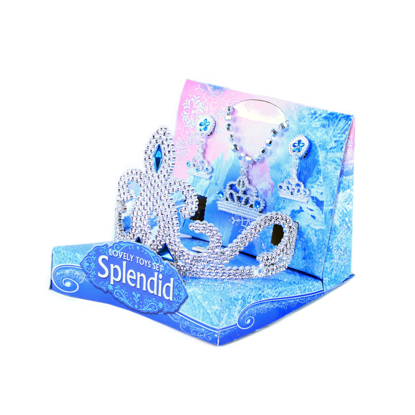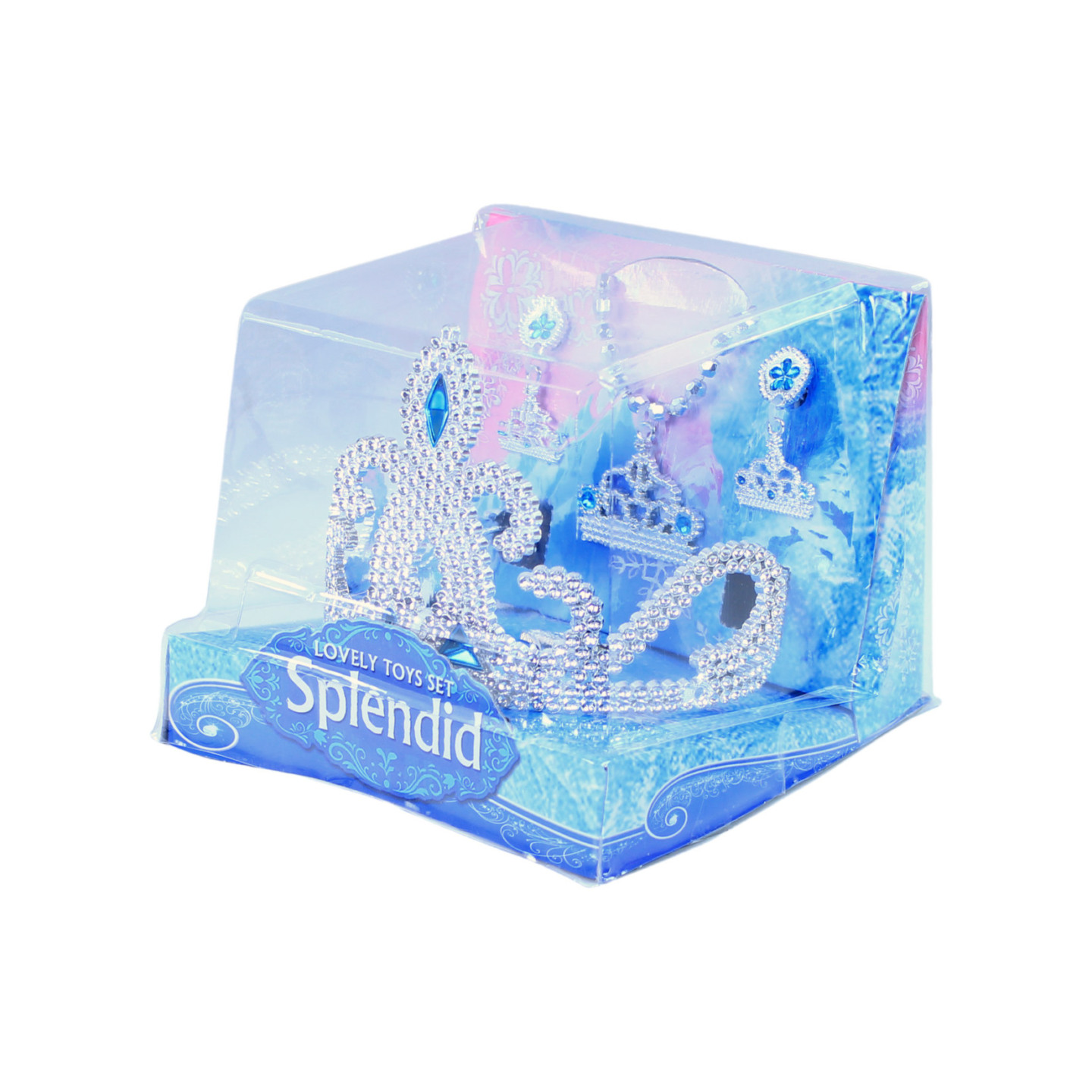 Krásná korunka s náušnicemi, náhrdelníkem a prstýnkem pro všechny princezny. Doplňky jsou zdobeny modrými prvky. Perfektní sada ke kostýmu! Doporučeno pro děvčata od 3 let.