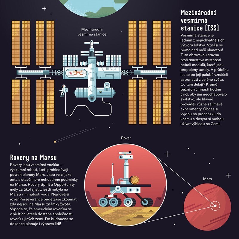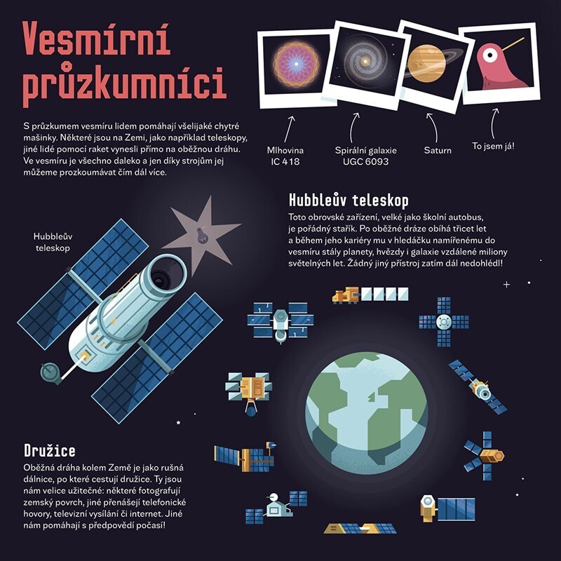 Zajímá tě vše okolo vesmíru? Chtěl by ses dozvědět, jaká úžasná tělesa či člověkem vyrobené mašinky v kosmu poletují? Stal by ses rád astronautem a viděl všechno na vlastní oči? Stejně to má kivi ptáček Karel. Proleť se s tímto odvážným dobrodruhem vesmírem a nahlédni až za hranice naší galaxie!...