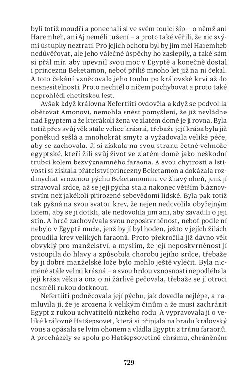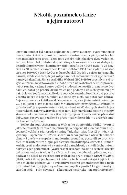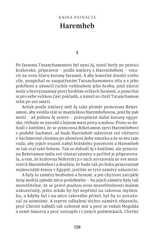 Pozoruhodné a barvité osudy vypravěče Sinuheta čtenáře zavedou do významných míst tehdejšího světa, do válečné vřavy, nelítostných bojů o moc, dvorských pletich a úkladů tak podrobně a věrohodně, že lze jen obdivovat, jak nestárnoucí obraz této doby i podobenství lidského života v samotném...