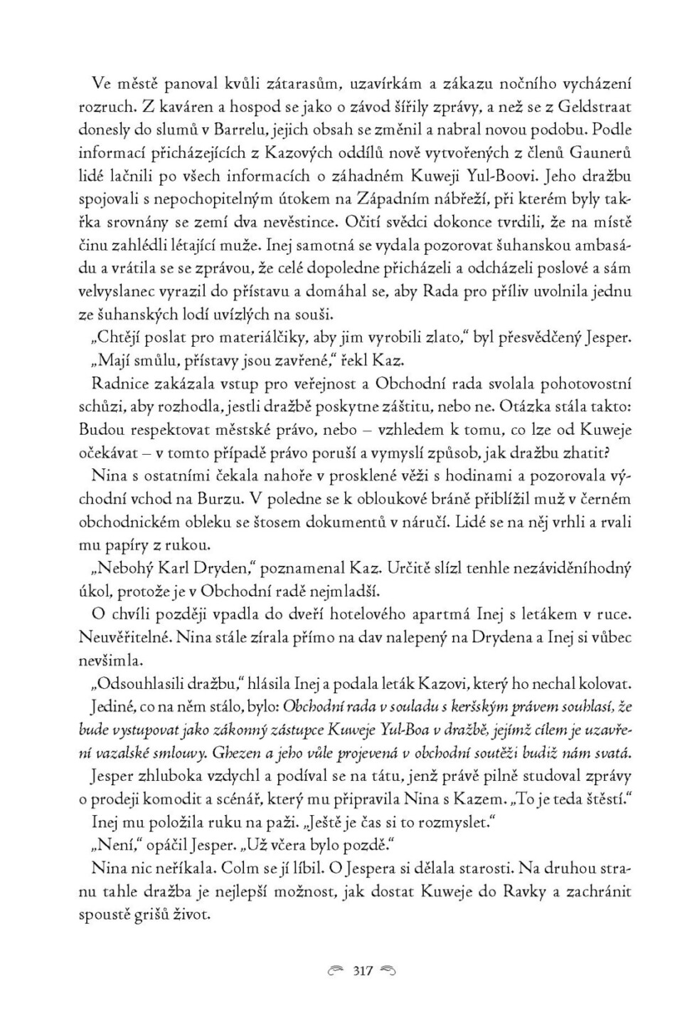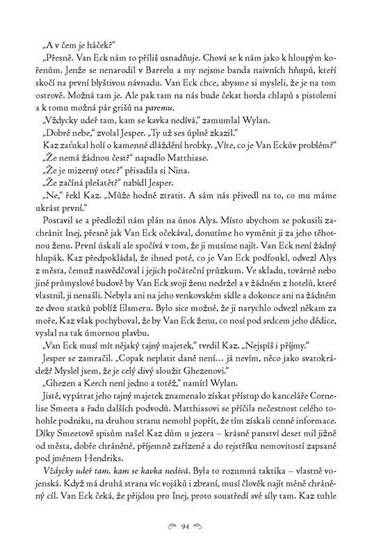 Kazu Brekkerovi a jeho lidem se podařil nevídaný kousek, za který měli přislíbenou tučnou odměnu. Jenže místo toho, aby se o ni rozdělili, čekala na ně zrada. Proto musí napnout všechny své síly, aby získali to, co jim patří. V temných ulicích zkorumpovaného Ketterdamu se mezitím schyluje k...